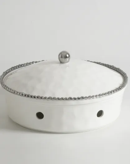 Plato redondo para hornear tartas Salerno con tapa blanca y dorada