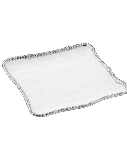 Plato cuadrado blanco y dorado de Salerno, 27,9 x 27,9 x 2,5 cm