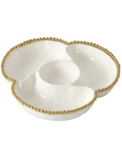 Bandeja Golden Salerno blanca y dorada de 4 compartimentos