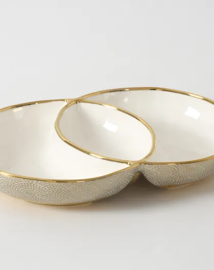 Bandeja Sensu Leopard dorada y blanca con 3 compartimentos