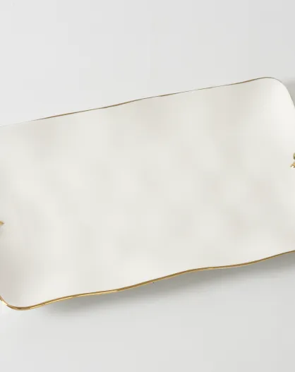 Bandeja rectangular FLEUR DE LYS blanca y dorada