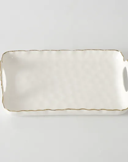 Bandeja pequeña Portofino blanca y dorada con asas