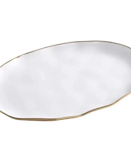 Bandeja ovalada blanca y dorada a la luz de la luna, 40,6 x 27,3 x 2,5 cm