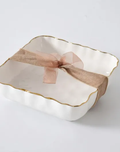 Servilletero Portofino blanco y dorado