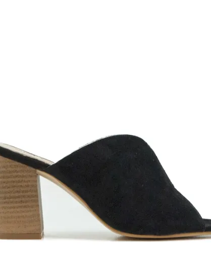Mules Colette con tacón de gamuza negra, tacón: 8 cm