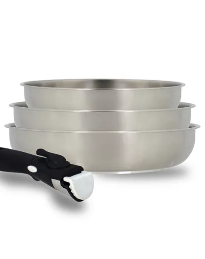 Set de 3 sartenes tipo iris de acero inoxidable con asa, 20/24/28 cm
