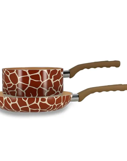 Juego de sartenes y cazos con forma de jirafa en aluminio con revestimiento cerámico de color marrón beige, 24 cm de diámetro y 18 cm de diámetro