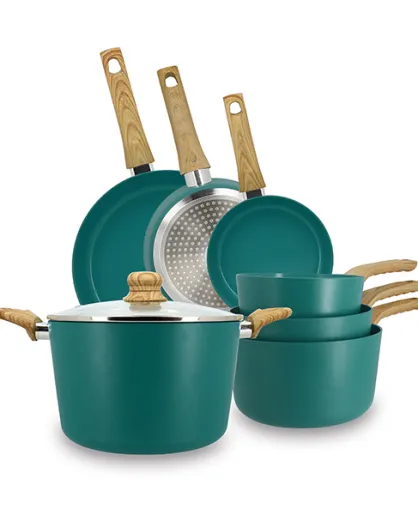 Juego de 7 cacerolas, sartenes y horno holandés en aluminio, inducción, color azul pato, 470 x 283 x 160 cm