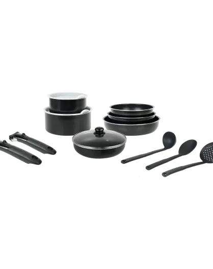 Juego de utensilios de cocina Sitrremovable Family de aluminio prensado reciclado negro, 14 piezas