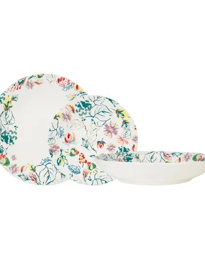 Juego de vajilla con decoración floral, estampado, 18 piezas