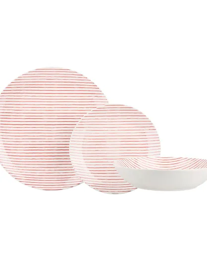 Set de vajilla Decoración Bayadere de porcelana rojo/gris, 18 piezas