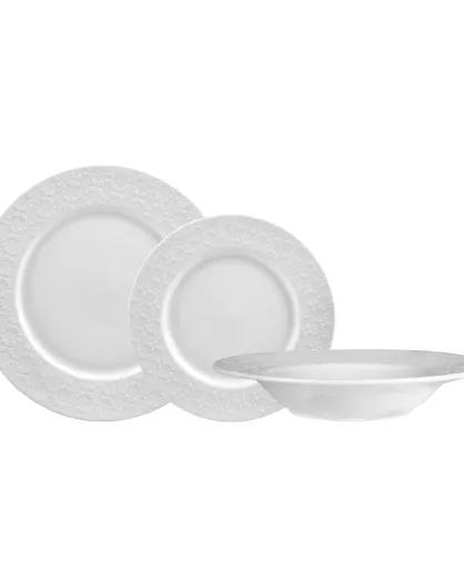 Juego de vajilla de porcelana Calais Caudry con decoración en relieve blanco, 18 piezas