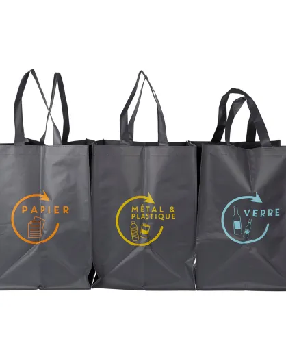 Juego de 3 bolsas de plástico recicladas, 44 x 32 cm