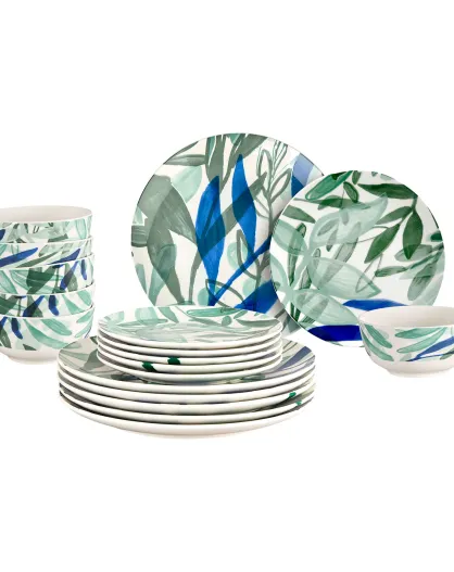 Juego de vajilla de porcelana Voyage à Kalamata con decoración vegetal verde/azul, 18 piezas
