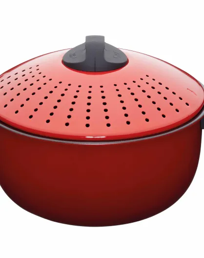 Olla para pasta World of Flavors de acero al carbono de 4 litros, roja - 25,5 x 32,5 x 16 cm