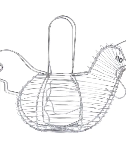 Cesta grande de alambre cromado para pollos - 31,7 x 19,5 x 23 cm