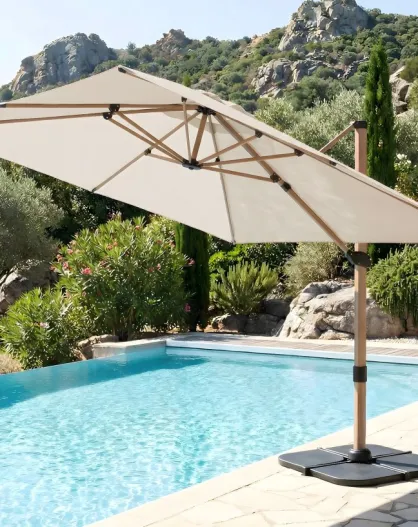 Parasol déporté effet bois Quartz lin - 3x3cm