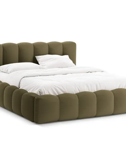 Cama tipo baúl con cabecero en tejido estructural Senna verde, 226 x 206 x 95 cm