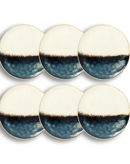 Juego de 6 platos de postre katanga de arenisca blanca y azul, 20,5 cm de diámetro