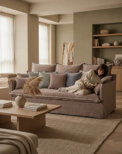 Sofá de lino desteñido en terracota - 210x100x80 cm