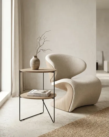 Mesa auxiliar ovalada 2 bandejas natural/negra - 43x40x60 cm