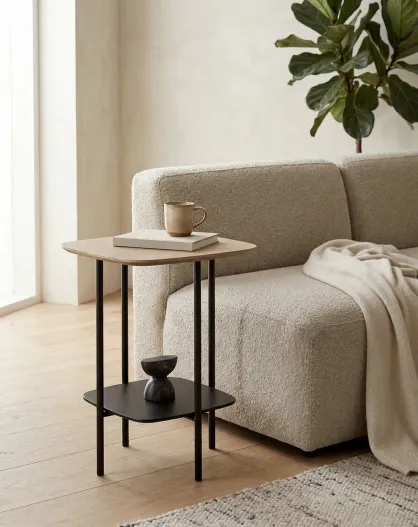 Mesa auxiliar cuadrada natural/negra - 40x40x60 cm