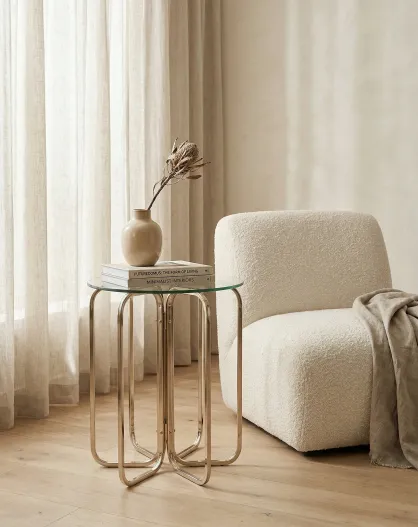 Mesa con pedestal de metal con cristal dorado - 30x45x60 cm