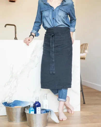 Delantal de cocina de lino lavado negro - 95x70 cm