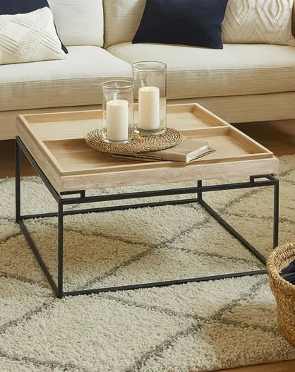 Mesita cuadrada con tapa compartimentada reversible Duplix Beige efecto travertino - 80x80x45 cm