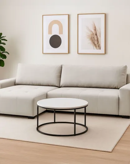 Elegante sofá esquinero convertible Malone de tela beige - 292x160x88 cm