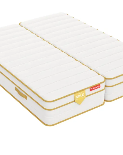 Juego de 2 colchones HGOLD TWINS de 30 cm con micromuelles conectables y espuma viscoelástica HD en blanco dorado, 80 x 200 cm