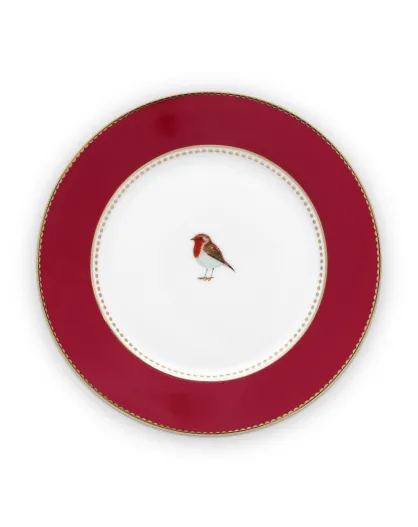 Plato para pan rojo con 6 pájaros Love Birds, 17 cm