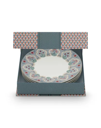 Set de regalo de 4 platos para festivales de flores de color azul claro, 21 cm