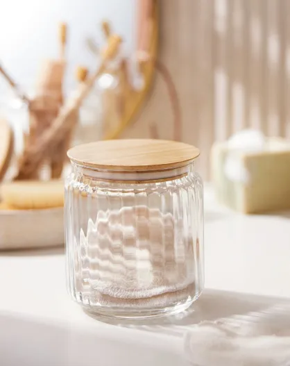 Tarro Nova de vidrio transparente con tapa de bambú - 0.75L