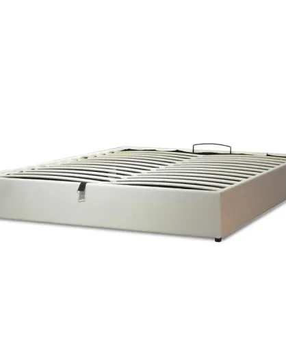 Incluye cama tipo baúl con piel sintética blanca, 180 x 200 cm