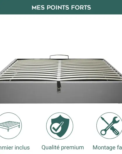 Cama troncal paralela Viene en pana gris - 140x190 cm