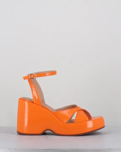 Sandalias con cuña de piel naranja - Tacón de 9,5 cm