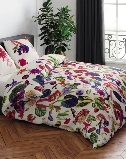 Funda nórdica y 2 fundas de almohada de satén de algodón Jardin Floral multico, 260 x 240 cm, 2 x 63 cm